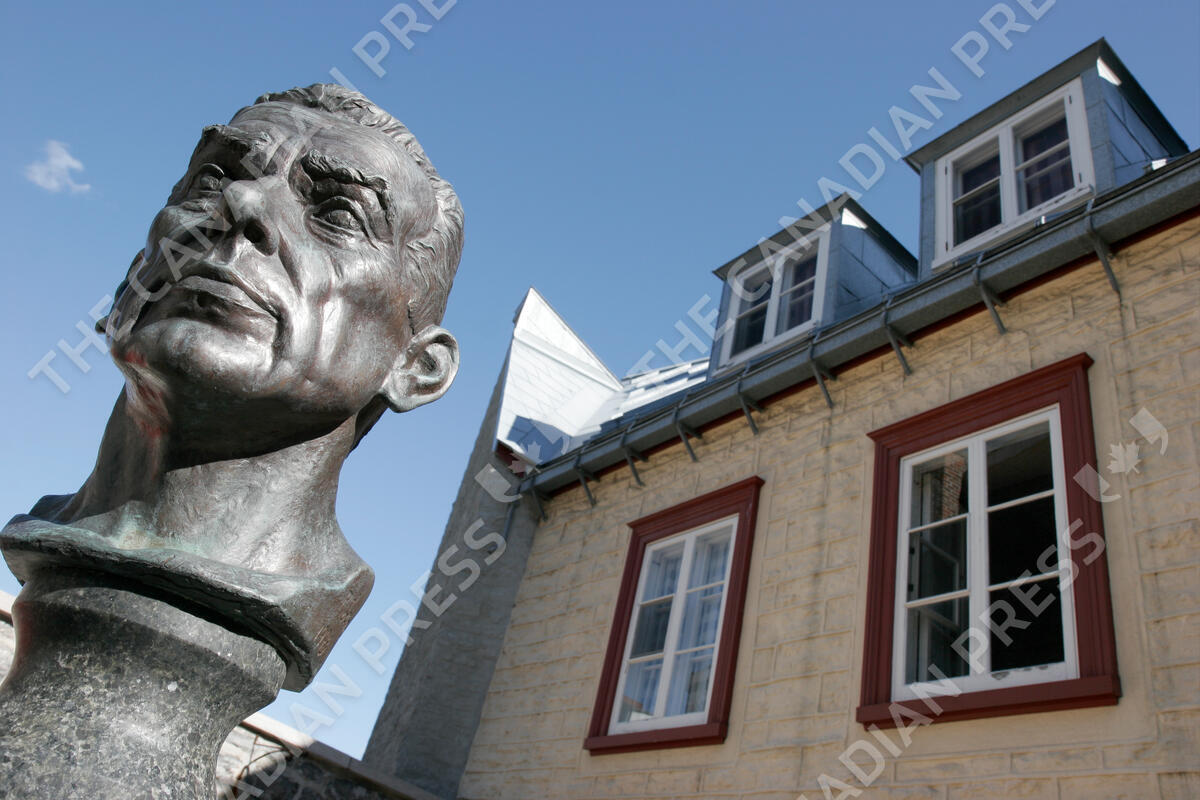 Canada, Quebec City, Lower Town, Rue du Sault au Matelot, memorial bust, painter Jean Paul Lemieux,