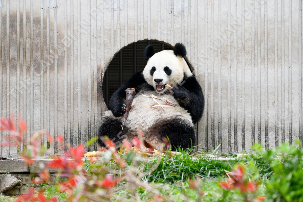 WOLONG, April 24, 2022 A giant panda eats at Shenshuping base of China Conservation and Research Center for Giant Pandas in Wolong National Nature Reserve, southwest China's Sichuan Province, April 24, 2022. (Credit Image: © Xu Bingjie/Xinhua via ZUMA Press)