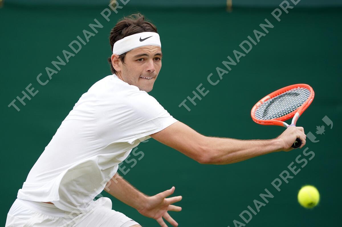 USA's Taylor Fritz in action against Great Britain's Alastair Gray during day four of the 2022 Wimbledon Championships at the All England Lawn Tennis and Croquet Club, Wimbledon. Picture date: Thursday June 30, 2022.