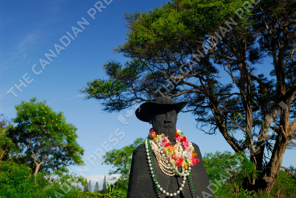 Statue of Father Damien at sunset St Joseph Church Molokai