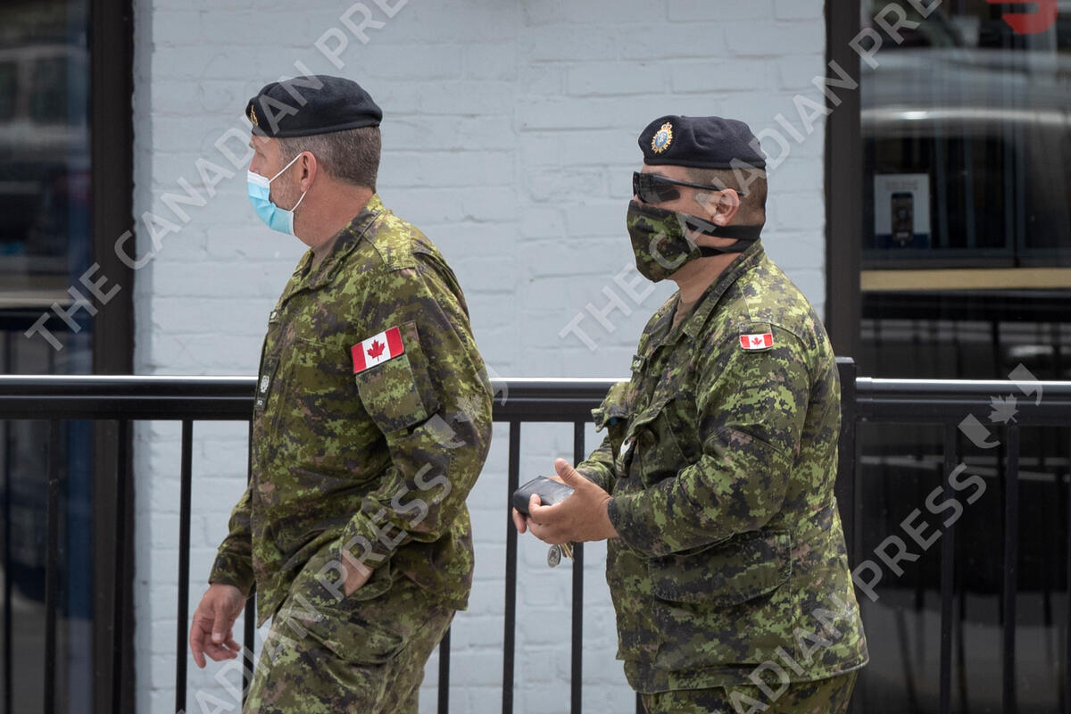 Canadian armed forces members wear face masks to protect them from the COVID-19 virus in Kingston, Ontario on Wednesday June 9, 2021. THE CANADIAN PRESS IMAGES/Lars Hagberg