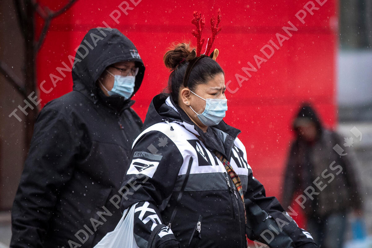 People wear surgical masks to protect them the COVID-19 virus in Kingston, Ontario on Wednesday December 15, 2021. THE CANADIAN PRESS IMAGES/Lars Hagberg