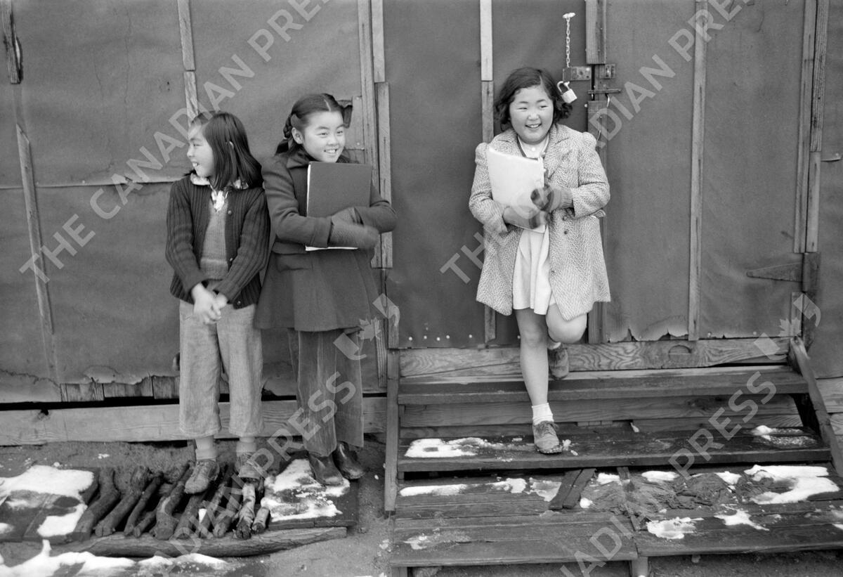 Three Smiling School Children, Manzanar Relocation Center, California, , USA, Ansel Adams, Manzanar War Relocation Center Collection, 1943