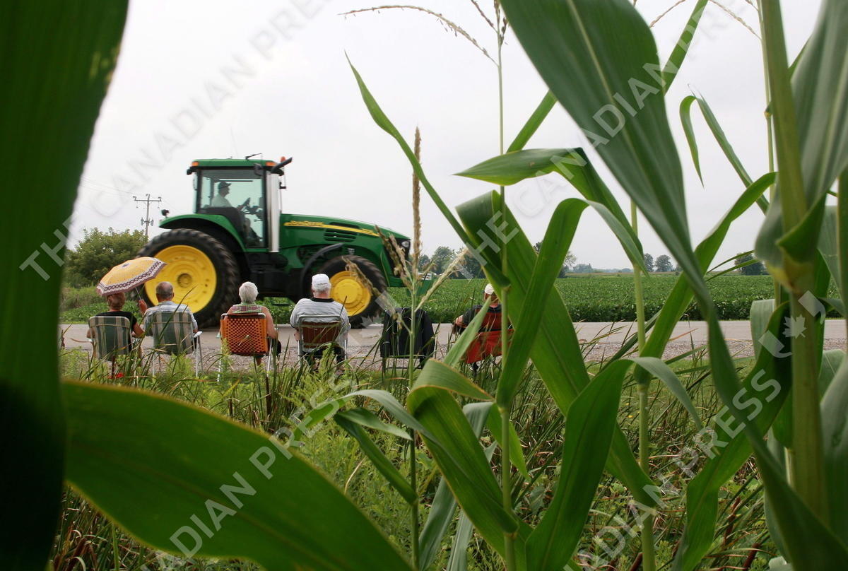 Spectators watch a parade of over 1,100 tractors in "The Greatest Tractor Parade - Farmers driving out cancer" event in Dresden, Ontario on Saturday, July 24, 2010. The Guinness World Record attempt tractor parade appears to have plowed under the current record of 601 tractors. Representatives from Guinness were on hand to varify the record attempt but the final number that completed the 2 mile parade is still being confirmed. THE CANADIAN PRESS/Dave Chidley