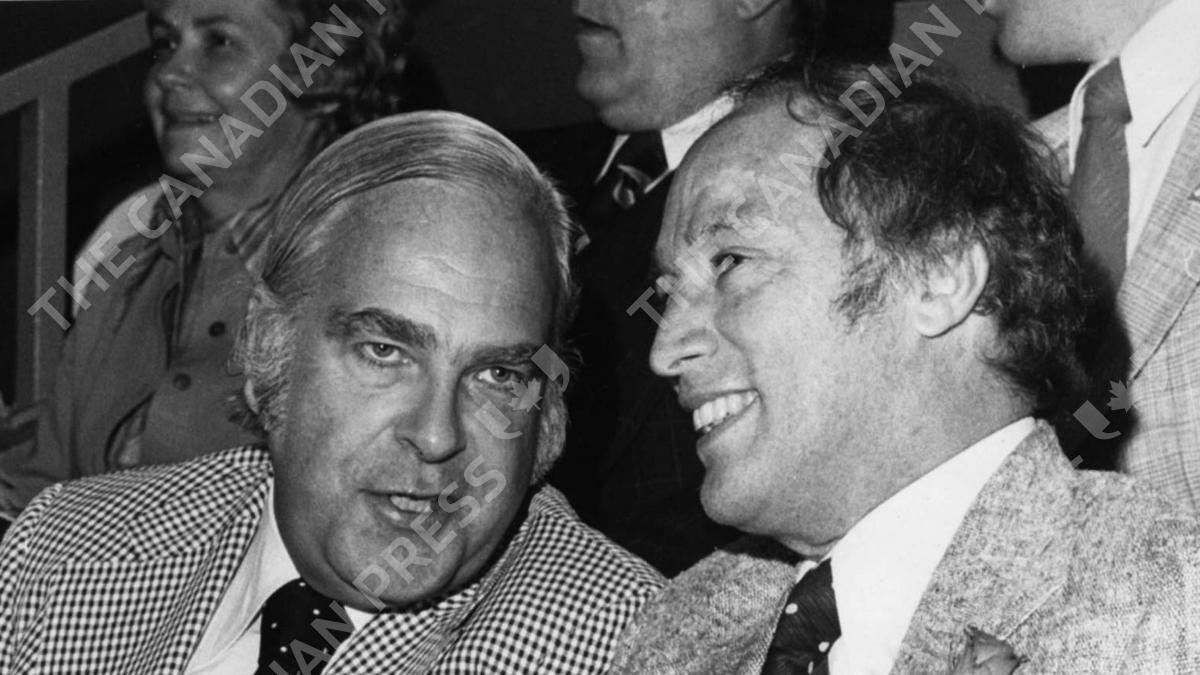 Senator Keith Davey chats with Prime Minister and Pierre Trudeau in this 1976 photo. Davey, a legendary Liberal organizer who was dubbed the "rainmaker" because of his near-magic political instincts, has died at age 84 in Toronto after a long illness. THE CANADIAN PRESS/files