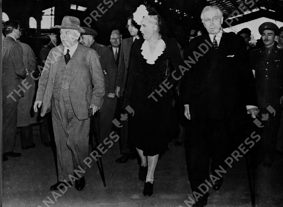 Paris France July 28, 1946 Conferences - Paris Peace Conference, Gare du Nord, Paris. Arriving from London. William Lyon Mackenzie King at left. (CP PHOTO) 1999 (National Archives of Canada) C-016472