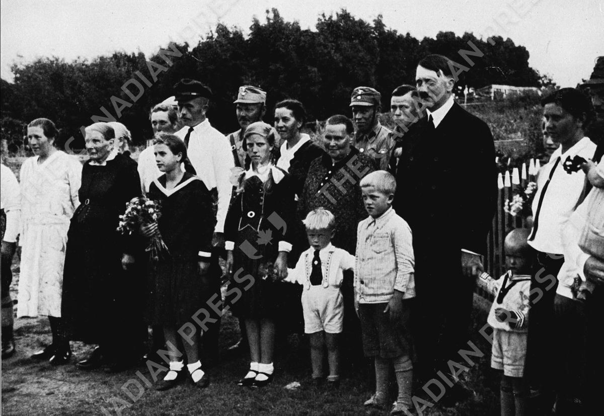 East Prussia, Germany; ca.1934-1939--People-- Adolf Hitler (right foreground) visiting a farm family in East Prussia. (CP PHOTO) 1999 ( National Archives of Canada/Heinrich Hoffmann) PA-164751