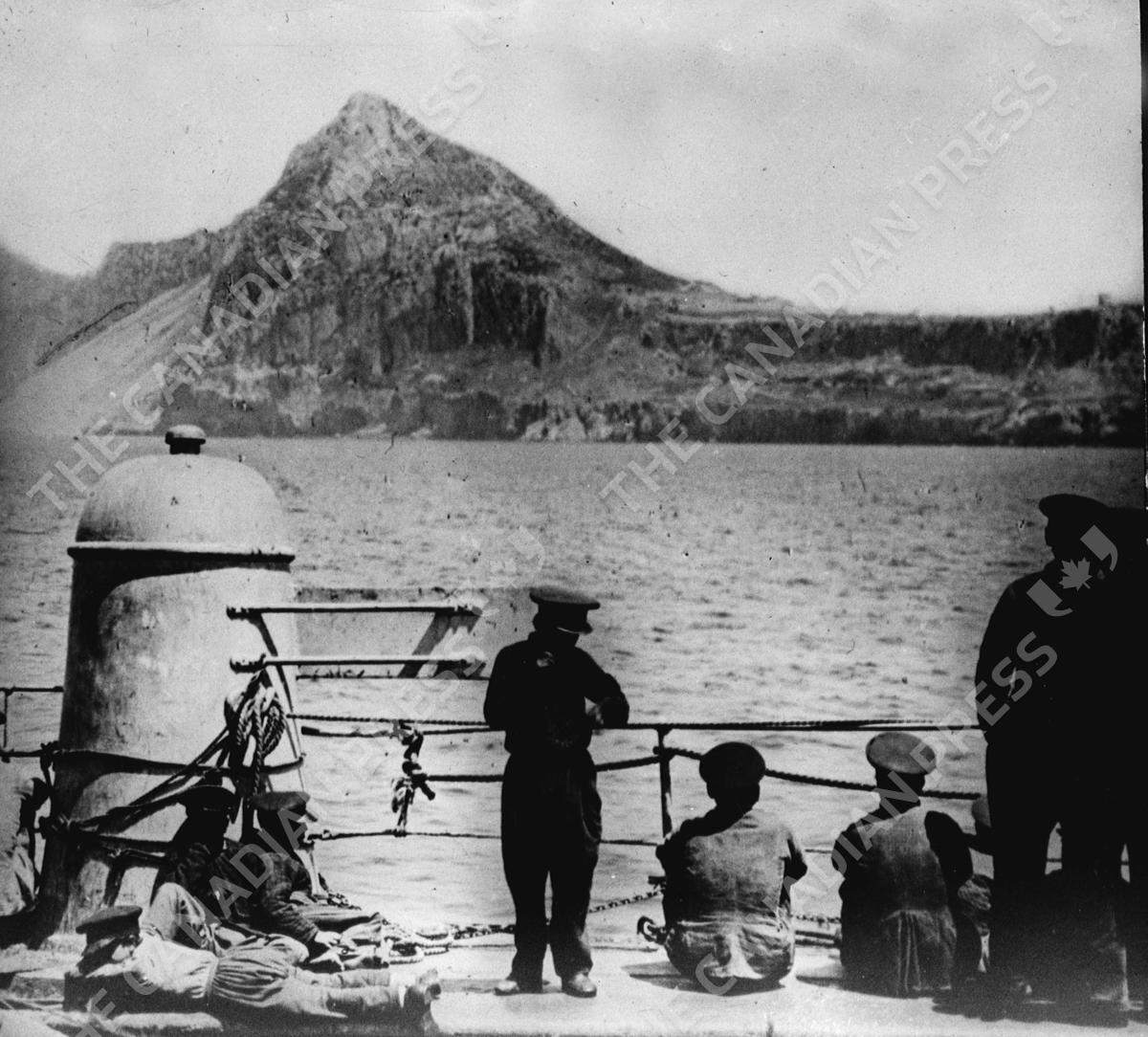 Gibraltar, 1899--Immigration--Rock of Gibraltar seen from the deck of the "Lake Huron", bringing the first group of Doukhobors to Canada.(CP PHOTO) 1999 (National Archives of Canada) PA-022228