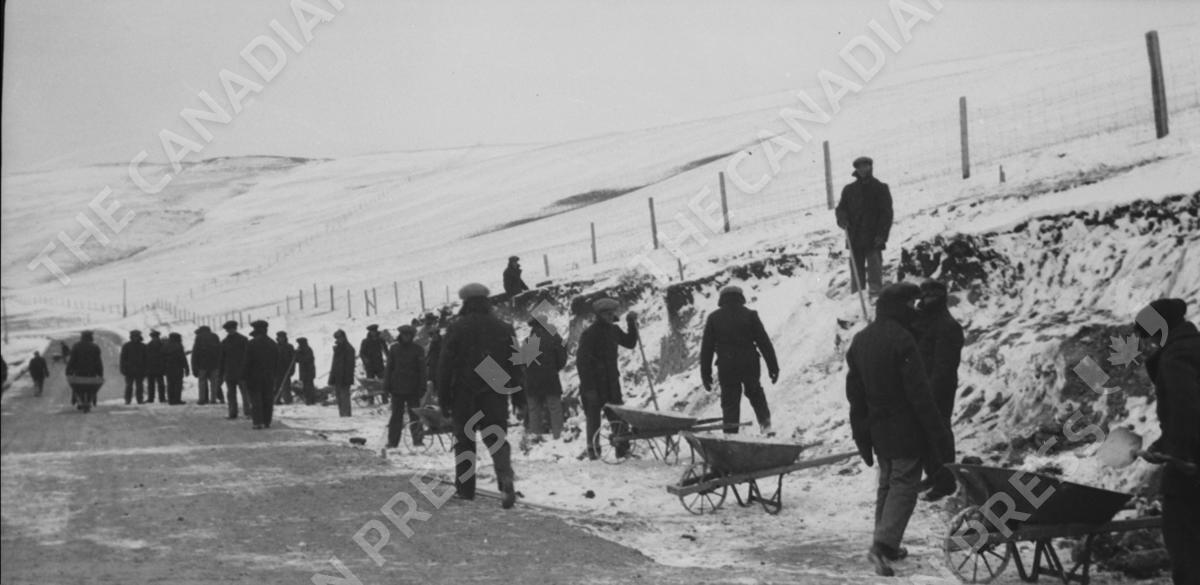 Banff, Alberta; March 1934--Unemployment Relief Projects--Connecting the new curve to the main highway Calgary - Banff (Relief Projects - No. 120)(CP PHOTO) 1999 (National Archives of Canada) PA-037033
