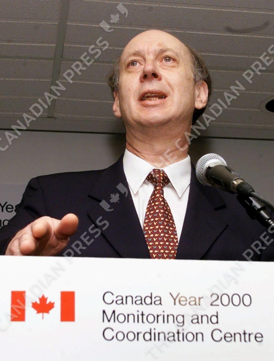 Paul Thibault, Federal Coordinator and National Contingency Planning head, holds a news conference at the Canada Year 2000 monitoring and coordination centre in Ottawa Wednesday November 24, 1999.(CP PHOTO/Fred Chartrand)