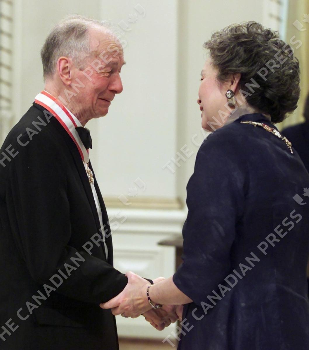 George Bain of Mahone Bay N.S., is congratulated by Governor General Adrienne Clarkson after being invested into the Order of Canada at a ceremony in Ottawa Thursday May 31, 2001.(CP PHOTO/Tom Hanson)