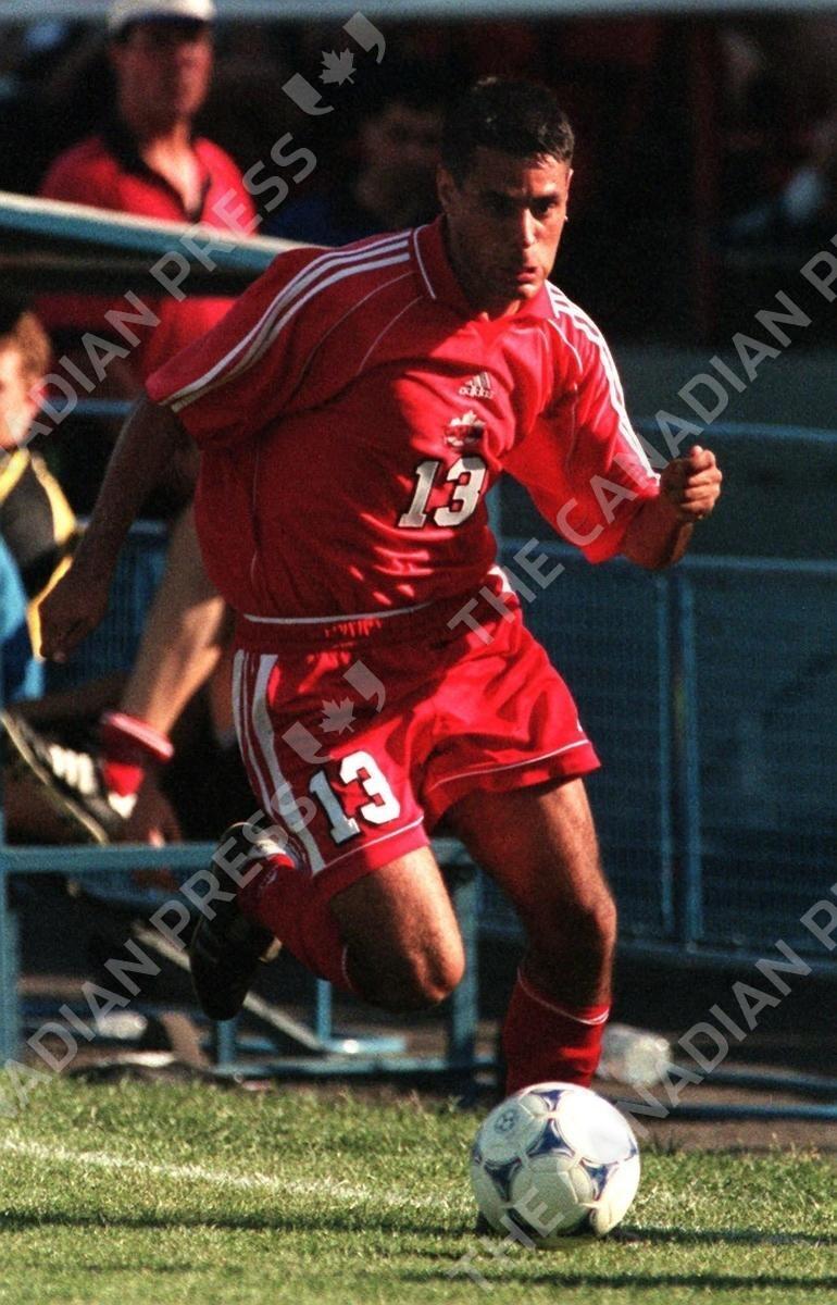Canada's Ante Jazic runs the ball up field during an exhibition game against Guatemala in international soccer in Toronto on Saturday, May 29, 1999. Canada defeated Guatemala 1-0. (CP PHOTO/David Lucas)