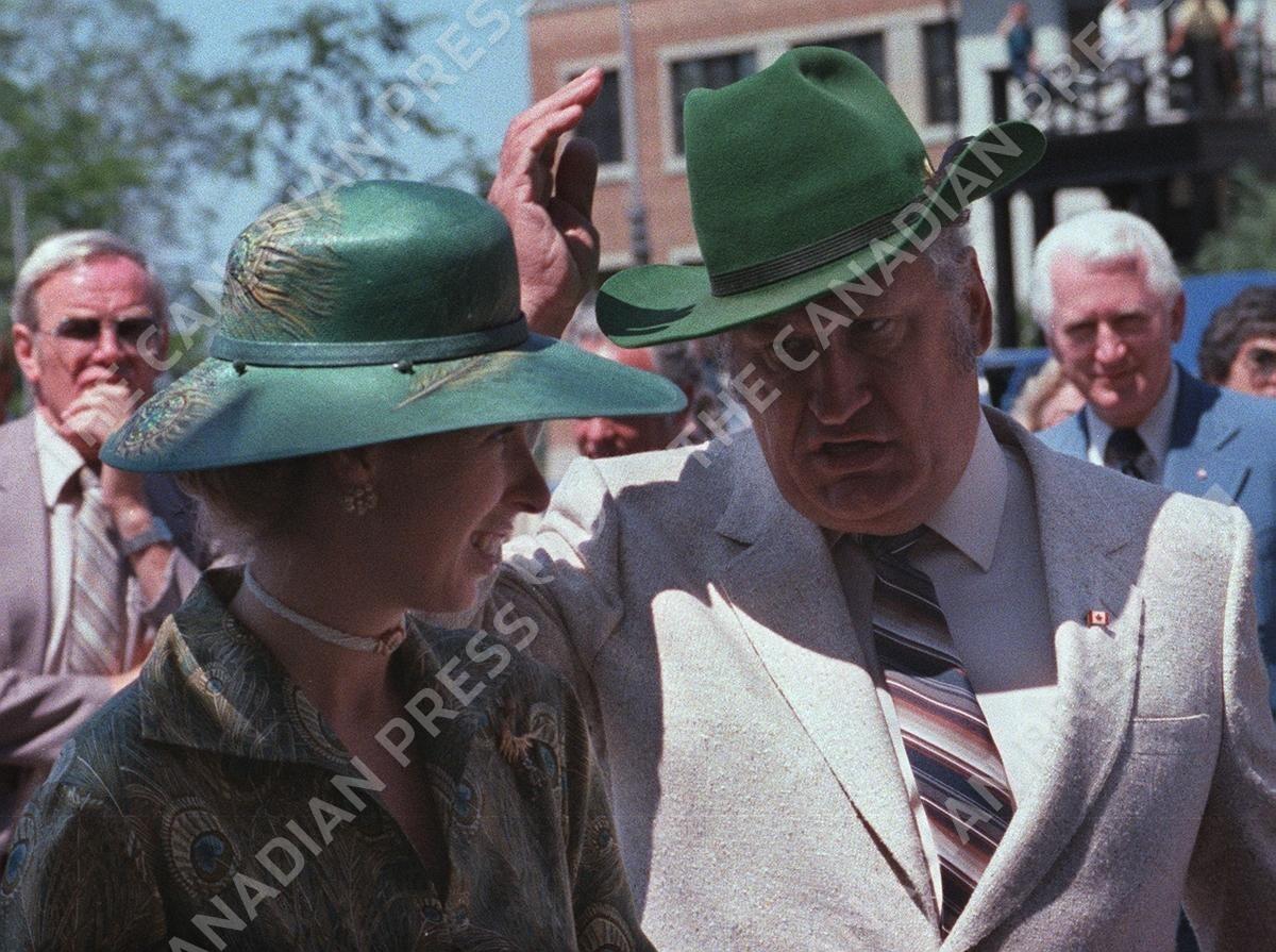 England's Princess Anne is shown with Agriculture Minister Eugene Whelan while visiting the Experimental Farm in Ottawa on July 5, 1982. (CP PHOTO/Andy Clark)