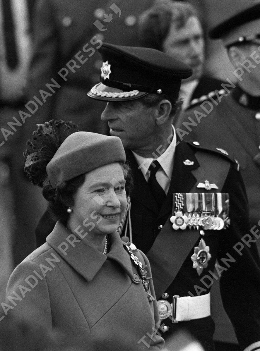 Queen Elizabeth II and Prince Philip look in different directions on Parliamnet Hill as they arrive for the proclamation ceremony April 17, 1982. (CP PHOTO/ Ryan Remiorz)