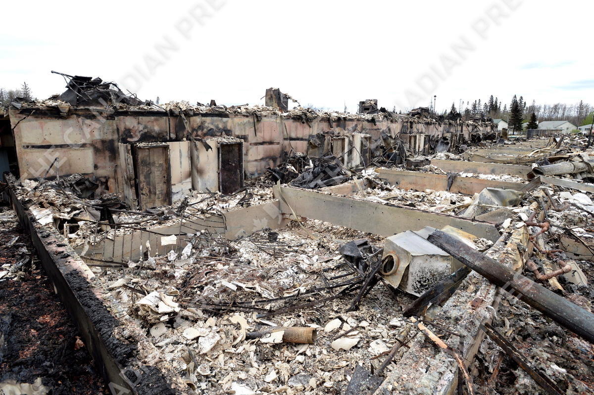 Burned out houses are shown in the Abasands neighbourhood during a media tour of the fire-damaged city of Fort McMurray, Alta. on Monday, May 9, 2016. The Fort McMurray wildfire in May 2016 destroyed almost 2,600 homes and resulted in many tales of hardship but Rob de Pruis says one man's "heart-breaking" story stands out for him. THE CANADIAN PRESS/Jonathan Hayward