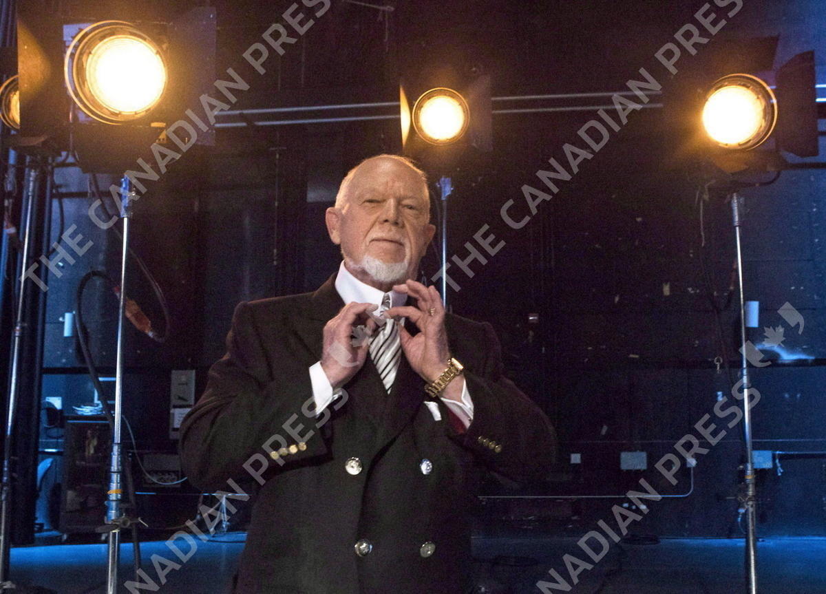 Don Cherry poses for a photo in Toronto on Monday, March 10, 2014 . Don Cherry says he isn't moving on from "Coach's Corner" just yet. The colourful and often outspoken Cherry immediately took to social media to state he was told by his bosses at Sportsnet that he'd be returning next season. THE CANADIAN PRESS/Chris Young