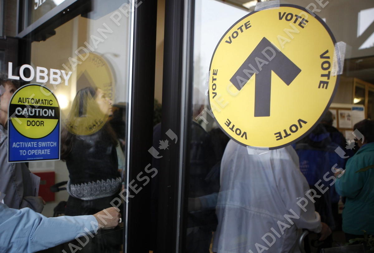Voters wait in line to cast their ballots both inside and outside the SHOAL Centre on election day in Sidney, B.C., on Oct. 19, 2015. A third-party organization linked to a series of robocall and text campaigns in Canada is now officially registered as a third party for the upcoming federal election. THE CANADIAN PRESS/Chad Hipolito