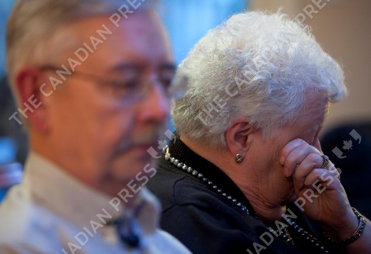 Sandra Lang wipes her eye as she and her husband Art speak to The Canadain Press during a interview at their Vancouver home Friday, Dec 17, 2010. The Langs were talking about the IED explosion that killed their daughter Michelle Lang and 4 soldiers in Afghanistan on Dec 30, 2009. THE CANADIAN PRESS/Jonathan Hayward