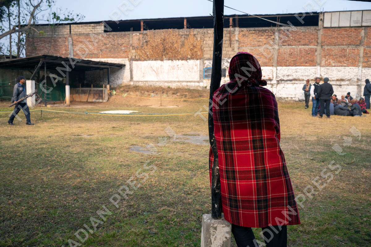 An archer waits for an archery event to begin in Shillong, India, Monday, Jan. 16, 2023. Each afternoon, except on Sundays and public holidays, this event takes place in a small field and people place bets on the results. (AP Photo/Ashwini Bhatia)