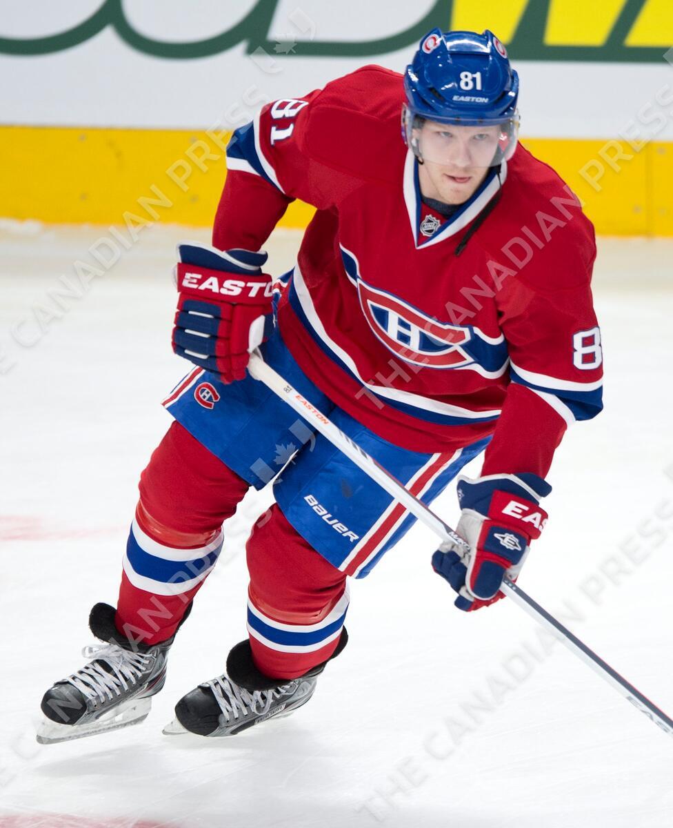 Montreal Canadiens center Lars Eller during the pre-game warm-up Monday, April 1, 2013 in Montreal. THE CANADIAN PRESS IMAGES/Paul Chiasson