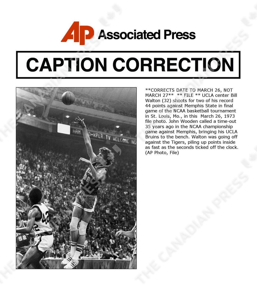 CORRECTION Final Four UCLA Remember '73 Basketball