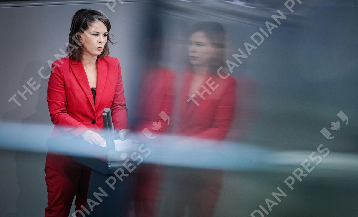 29 September 2022, Berlin: Annalena Baerbock (BÌ ndnis 90/Die GrÌ nen), Foreign Minister, speaks to the members of the Bundestag. The topic is a topical hour on the protests in Iran after the death of Mahsa Jina Amini. (Credit Image: © Kay Nietfeld/dpa via ZUMA Press)
