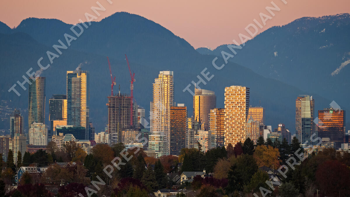 A colourful sunset is reflected by the high-rise buildings of Vancouver's downtown, Vancouver, B.C., on Monday, November 14, 2022. THE CANADIAN PRESS IMAGES/Bayne Stanley