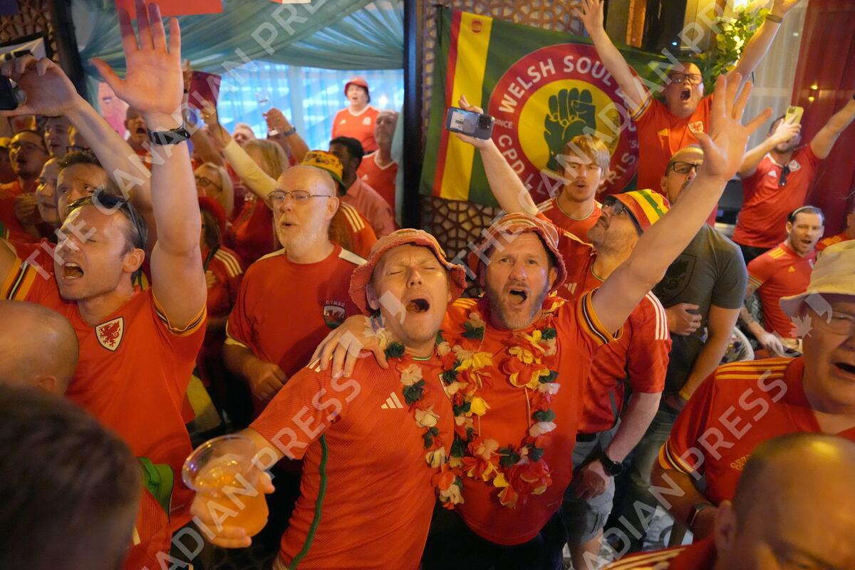 Welsh fans gather at the Intercontinental Hotel in Doha, Qatar, on the day of the FIFA World Cup Group B match between Wales and England. Picture date: Tuesday November 29, 2022.