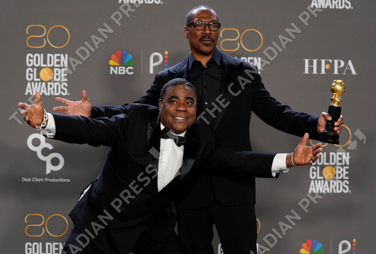 Tracy Morgan, left, poses with Eddie Murphy, recipient of the Cecil B. DeMille award, at the 80th annual Golden Globe Awards at the Beverly Hilton Hotel on Tuesday, Jan. 10, 2023, in Beverly Hills, Calif. (Photo by Chris Pizzello/Invision/AP)