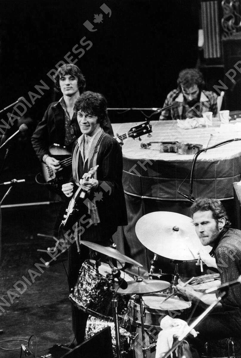 FILE - In this Nov. 27, 1976 file photo, The Band, Richard Manuel on piano, Levon Helm on drums, lead guitarist Robbie Robertson, center, and bass guitarist Rick Danko, take the stage for their final live performance before a crowd of 5,000 at Winterland Auditorium in San Francisco. Helm, who was in the final stages of his battle with cancer, died Thursday, April 19, 2012 in New York. He was 71. He was a key member of The Band and lent his distinctive Southern voice to classics like "The Weight" and "The Night They Drove Old Dixie Down." (AP Photo/John Storey, file)