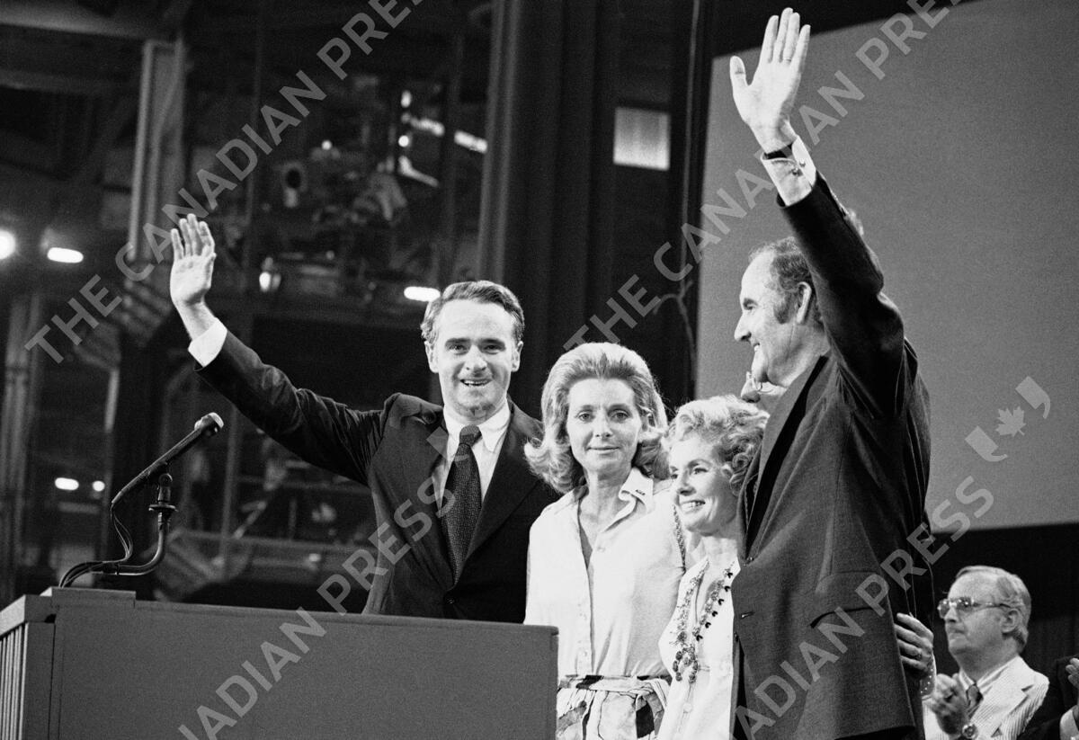 FILE - In this July 14, 1972 file photo, Sen. George S. McGovern with his wife, Eleanor, and Sen. Thomas F. Eagleton with his wife, Barbara Ann, stand before the Democratic National Convention delegates who chose them to try to capture the White House from President Richard Nixon in Miami. A family spokesman says, McGovern, the Democrat who lost to President Richard Nixon in 1972 in a historic landslide, has died at the age of 90. According to the spokesman, McGovern died Sunday, Oct. 21, 2012 at a hospice in Sioux Falls, surrounded by family and friends. (AP Photo)