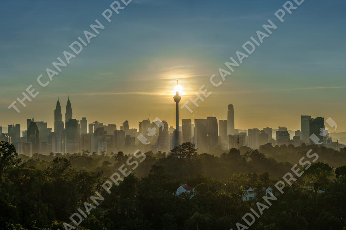 The sun rises behind Kuala Lumpur Tower in the morning in Kuala Lumpur, Malaysia, Tuesday, Jan. 17, 2023. (AP Photo/Vincent Thian)