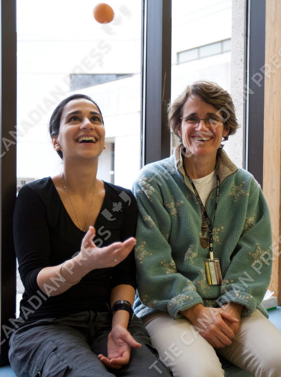 Bushra Saeed takes a break with her physiotherapist Marie Andree Paquin as she goes through her daily physiotherapy routine at the Rehabilitation Centre in Ottawa on Thursday Dec. 2, 2010. THE CANADIAN PRESS/Sean Kilpatrick