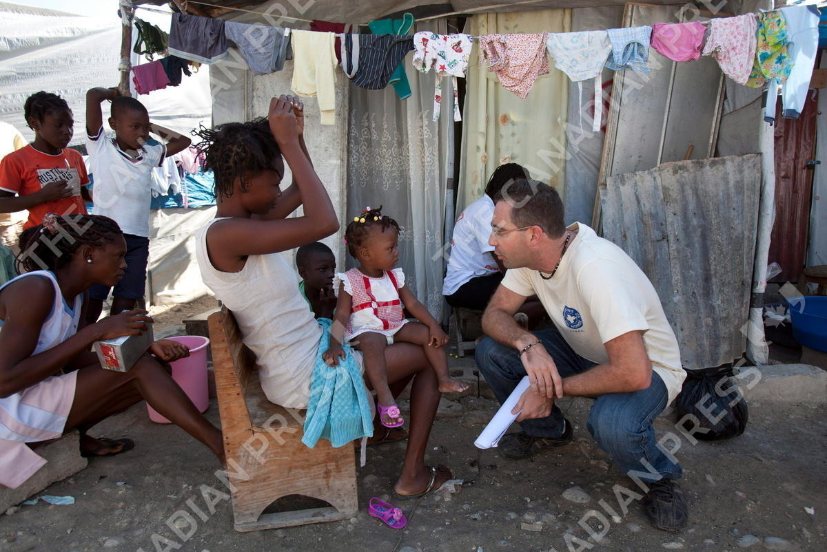Psychologist Patrick Lechasseur Medecins du Monde Canada checks for cases of cholera in a displaced person camp in the Cite Soleil district of Port-au-Prince Saturday, December 11, 2010. A year after an earthquake pummeled Haiti, more than a million people still live amid the squalor and violence of the country's sprawling tent cities.THE CANADIAN PRESS/Paul Chiasson