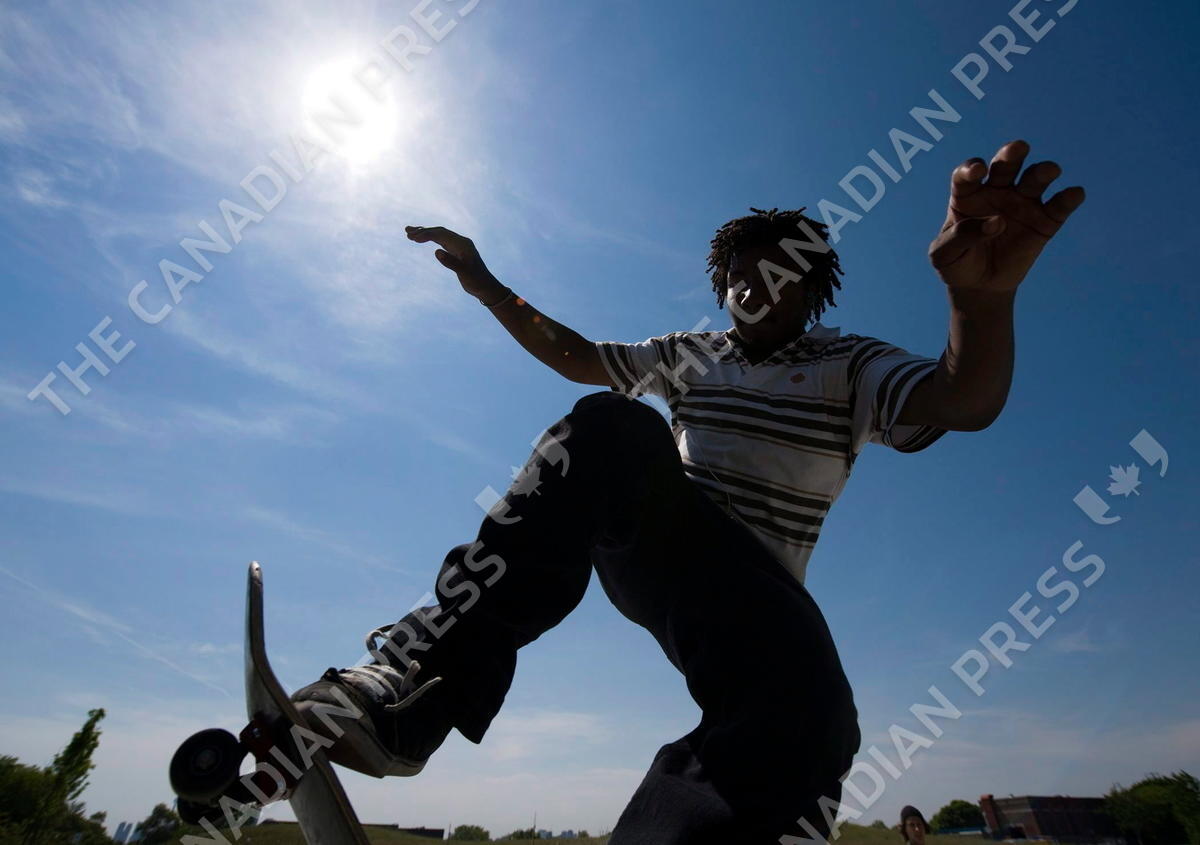Derrick Levantis skateboards in Woodbine Park in Toronto on Monday, May 31, 2010. THE CANADIAN PRESS/Adrien Veczan