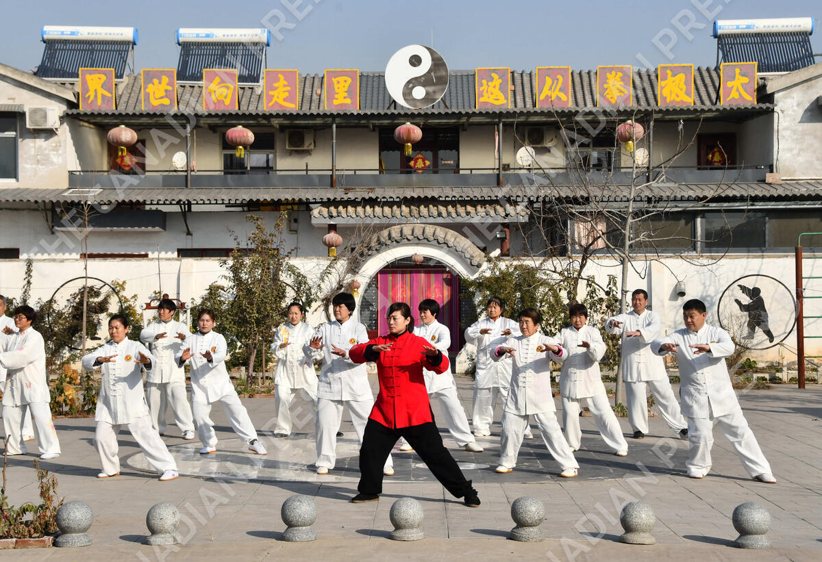 HANDAN, Dec. 17, 2020 Taijiquan enthusiasts practise Taijiquan at a traditional martial art school in Yongnian District, Handan City of north China's Hebei Province, Dec. 16, 2020. The United Nations Educational, Scientific and Cultural Organization (UNESCO) inscribed on Thursday China's Taijiquan on the Representative List of the Intangible Cultural Heritage of Humanity..Taijiquan, a kind of traditional martial arts, was born in the mid-17th century in a small village named Chenjiagou located in Central China's Henan province, before it spread to more than 150 countries and regions, attracting more than 100 million people to practise. (Credit Image: © Wang Xiao/Xinhua via ZUMA Press)