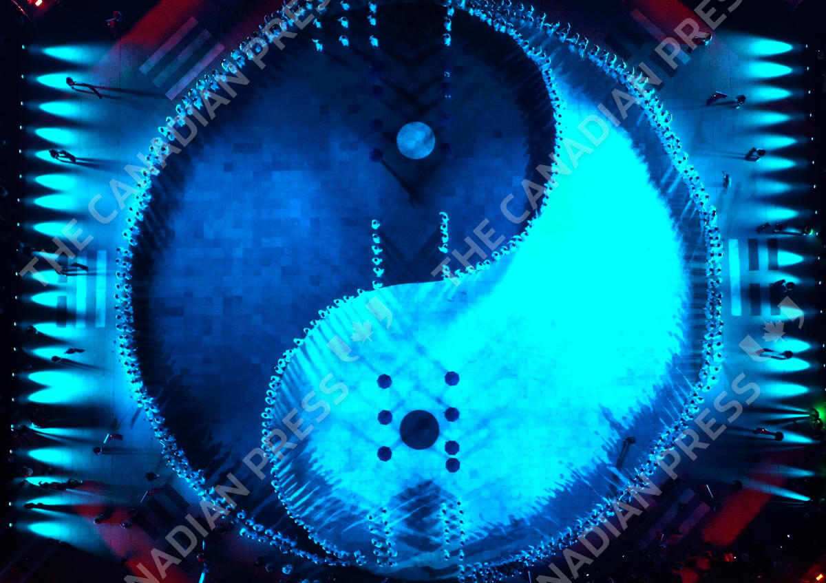 ZHENGZHOU, Dec. 17, 2020 Aerial photo shows the celebration of Taijiquan inscribed on the Representative List of the Intangible Cultural Heritage of Humanity in Chenjiagou Village, Wenxian County, Jiaozuo City of central China's Henan Province, Dec. 17, 2020. The United Nations Educational, Scientific and Cultural Organization (UNESCO) inscribed on Thursday China's Taijiquan on the Representative List of the Intangible Cultural Heritage of Humanity..Taijiquan, a kind of traditional martial arts, was born in the mid-17th century in a small village named Chenjiagou located in Central China's Henan province, before it spread to more than 150 countries and regions, attracting more than 100 million people to practise. (Credit Image: © Li Jianan/Xinhua via ZUMA Press)