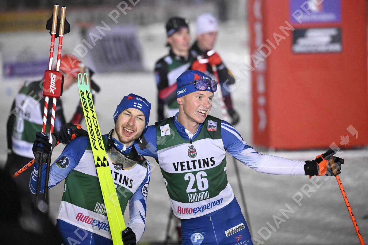 Ilkka Herola and Herman Happonen of Finland after 7,5 km Cross-Country Skiing of Nordic Combined Individual Compact at the FIS World Cup Ruka Nordic in Kuusamo, Finland on November 28, 2025. LEHTIKUVA / RONI REKOMAA - FINLAND OUT. NO THIRD PARTY SALES.