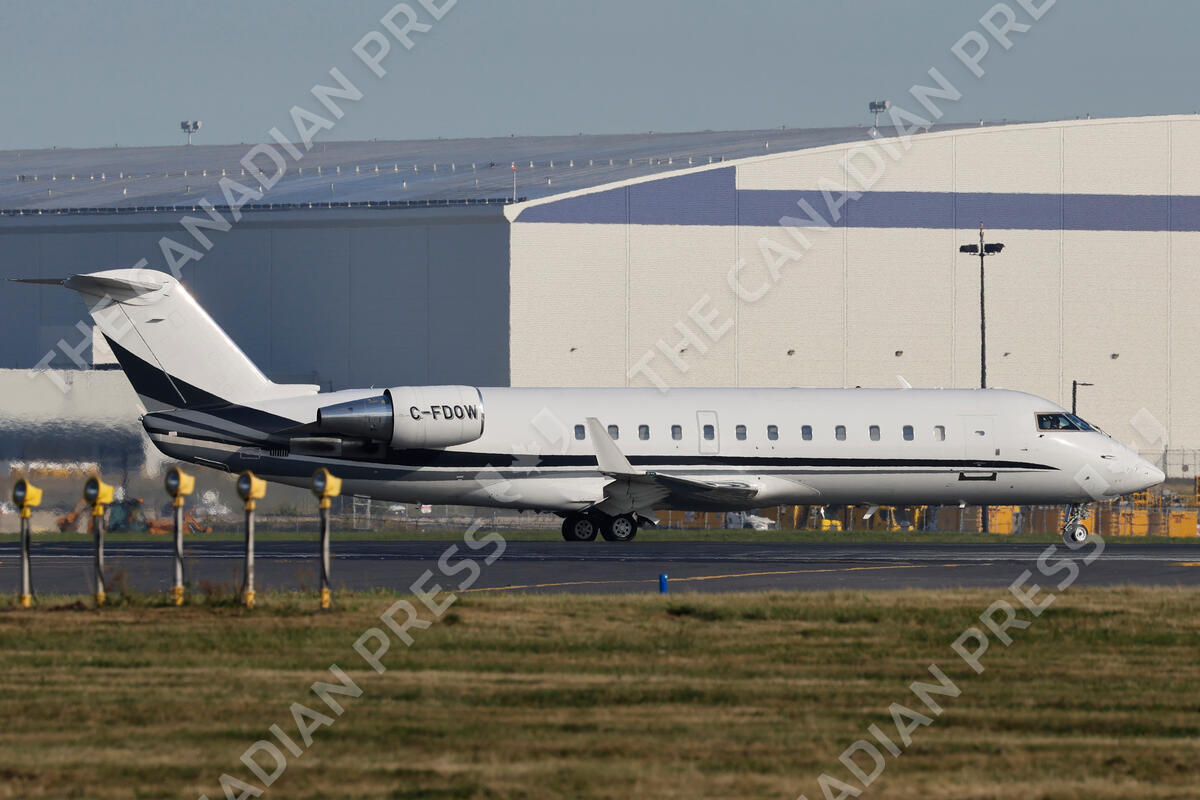 A Bombardier Challenger 850 (CL-600-2B19) jet, owned by The Craig Evan Corp., lands at Lester B. Pearson International Airport near Toronto, Ontario, Sept. 17, 2025. THE CANADIAN PRESS IMAGES/Larry MacDougal