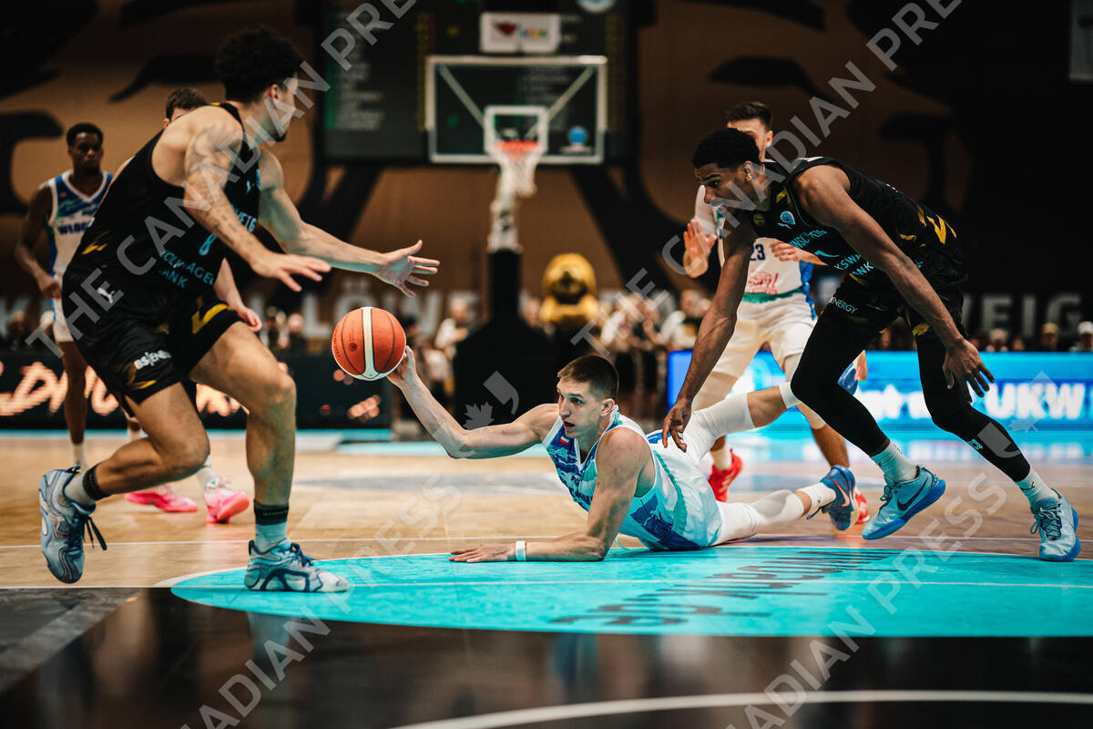 FIBA Europe Cup: Basketball Braunschweig Löwen vs. Anwil Wloclawek, 15.10.25 Dawid Supiski Anwil Wocawek, 16 spielt den Ball weiter während er liegt FIBA Europe Cup: Basketball Braunschweig Löwen vs. Anwil Wloclawek am 15.10.2025 in der Volkswagen Halle, Braunschweig *** FIBA Europe Cup Basketball Braunschweig Lions vs Anwil Wloclawek, 15 10 25 Dawid S upi ski Anwil W oc awek, 16 passes the ball while lying FIBA Europe Cup Basketball Braunschweig Lions vs Anwil Wloclawek on 15 10 2025 in the Volkswagen Halle, Braunschweig Copyright: xBEAUTIFULxSPORTS/Tonhäuserx