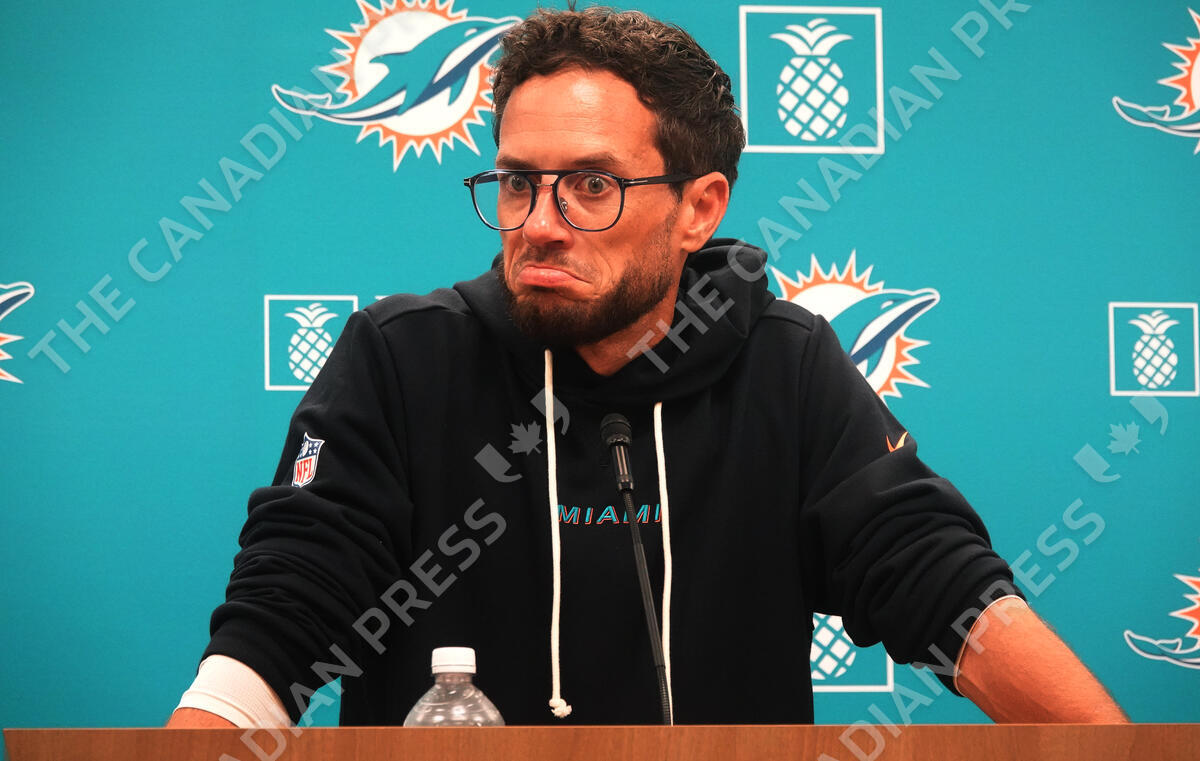 October 15, 2025, Miami Gardens, Fl, USA: Miami Dolphins head coach Mike McDaniel speaks to the media during practice Wednesday, Oct. 15, 2025, at the Baptist Health Training Complex in Miami Gardens. He shut down trade rumors surrounding players Friday. (Credit Image: © Joe Cavaretta/Sun Sentinel via ZUMA Press Wire)