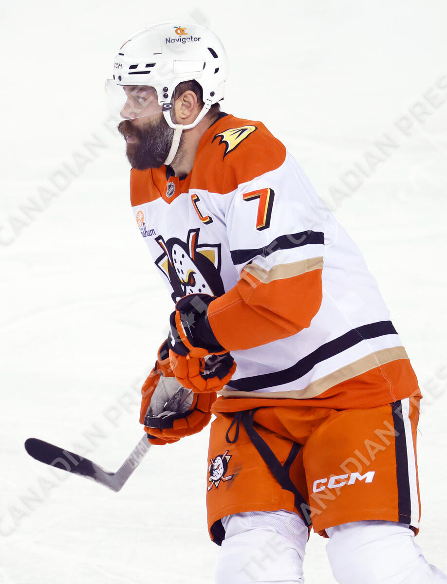 Profile photo on Anaheim Ducks D Radko Gudas, from Czechia, during an NHL (National Hockey League) game against the Calgary Flames in Calgary, Alta., Jan. 30, 2025. THE CANADIAN PRESS IMAGES/Larry MacDougal
