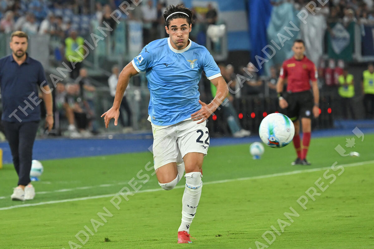 Matteo Cancellieri of SS Lazio during the serie A Enilive match between SS Lazio v Hellas Verona at olimpico stadium in Rome Mattia Vian during SS Lazio vs Hellas Verona FC, Italian soccer Serie A match in Rome, Italy, August 31 2025