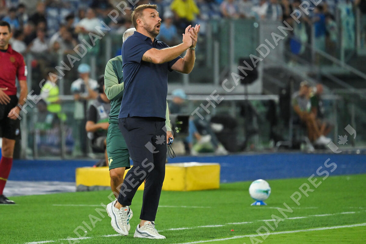 Verona trainer Paolo Zanetti react during the serie A Enilive match between SS Lazio v Hellas Verona at olimpico stadium in Rome Mattia Vian during SS Lazio vs Hellas Verona FC, Italian soccer Serie A match in Rome, Italy, August 31 2025