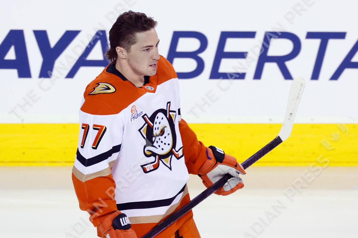 Profile photo on Anaheim Ducks RW Frank Vatrano during an NHL (National Hockey League) game against the Calgary Flames in Calgary, Alta., Jan. 30, 2025. THE CANADIAN PRESS IMAGES/Larry MacDougal