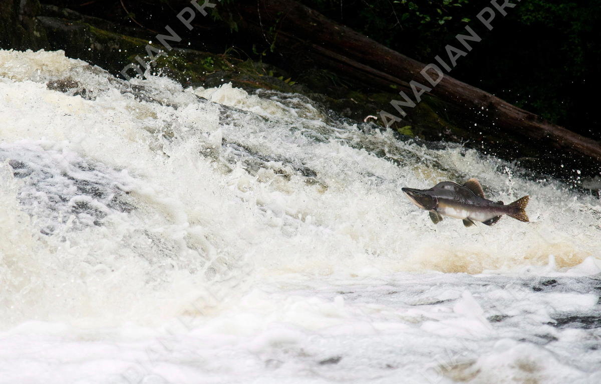 A salmon is seen trying to climb a small water falls at Quigley Creek near Princess Royal Island, B.C. Friday, Sept, 20, 2013. Following months of hearings, years of debate and dozens of protests, the federal panel reviewing the controversial Northern Gateway pipeline will release its report later Thursday. Much hangs in the balance. THE CANADIAN PRESS/Jonathan Hayward