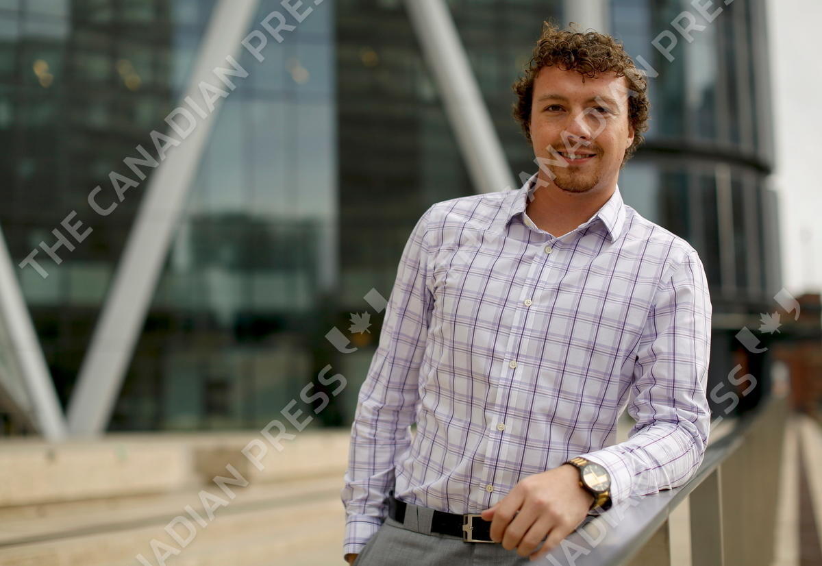 Justin Tracey, from Weyburn, Sask., outside his employers office in downtown Calgary, Alta., Monday, Sept. 30, 2013. THE CANADIAN PRESS/Jeff McIntosh