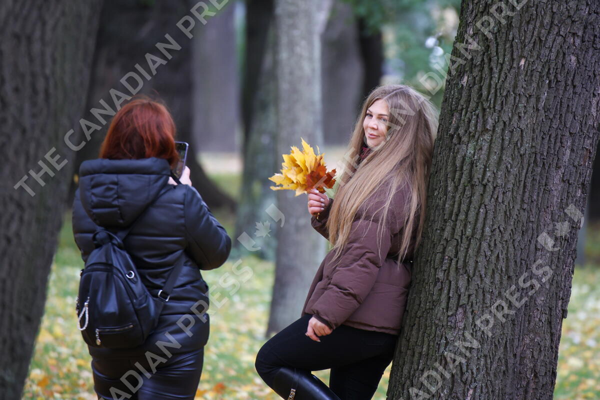 RUSSIA, ST PETERSBURG - OCTOBER 11, 2025: A girl poses for a photo with autumn leaves (Credit Image: © Valentin Yegorshin/TASS via ZUMA Press)
