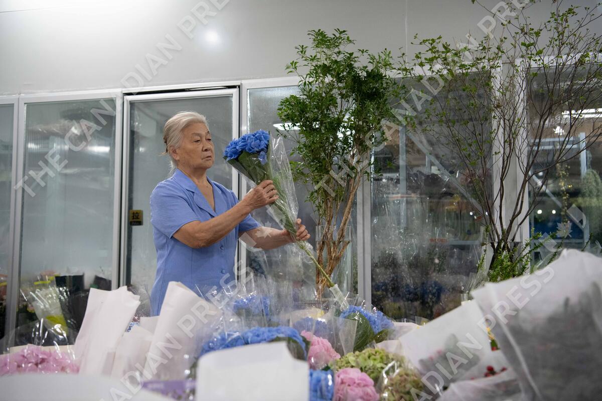 HEFEI, Oct. 11, 2025 Fu Yulan picks flowers for flower arrangement artworks at a flower shop in Hefei, east China's Anhui Province, Oct. 10, 2025.. In the city of Hefei, a team dedicated to the inheritance of the Hui-style flower arrangement art has promoted the development and exchange of the art across the province. . Fu Yulan, 81, is the initiator of this team and once worked as a teacher at the Anhui Agricultural University before retirement. She had helped the school offer the course of ''flower arrangement art'' to students in the early years. In addition, she had held exhibitions of flower arrangement works from students on a regular basis, which drew attention on and off campus. . Over the years, Fu and her team members have dug deep into the local culture of Anhui, integrating elements of folk customs and natural landscapes into traditional flower arrangement art. In the year of 2022, the Hui-style flower arrangement art was inscribed on the list of provincial intangible cultural heritage of Anhui Province. . Currently, Fu's team remains active at the forefront of promoting flower arrangement art, enabling more and more people to be fascinated by the charm of the art. (Credit Image: © Zhang Duan/Xinhua via ZUMA Press)