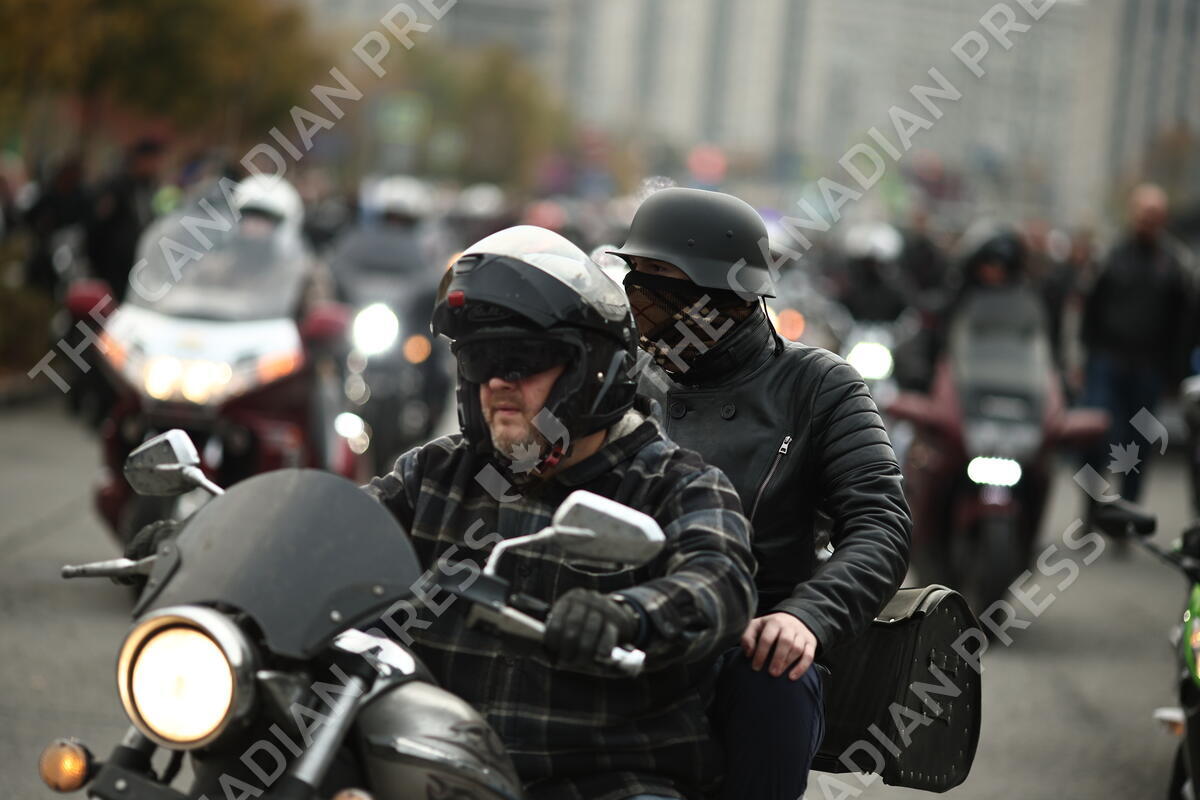 RUSSIA, MOSCOW - OCTOBER 11, 2025: Night Wolves Club bikers take part in a ride marking the closing of the 2025 riding season (Credit Image: © Valeria Kalugina/TASS via ZUMA Press)